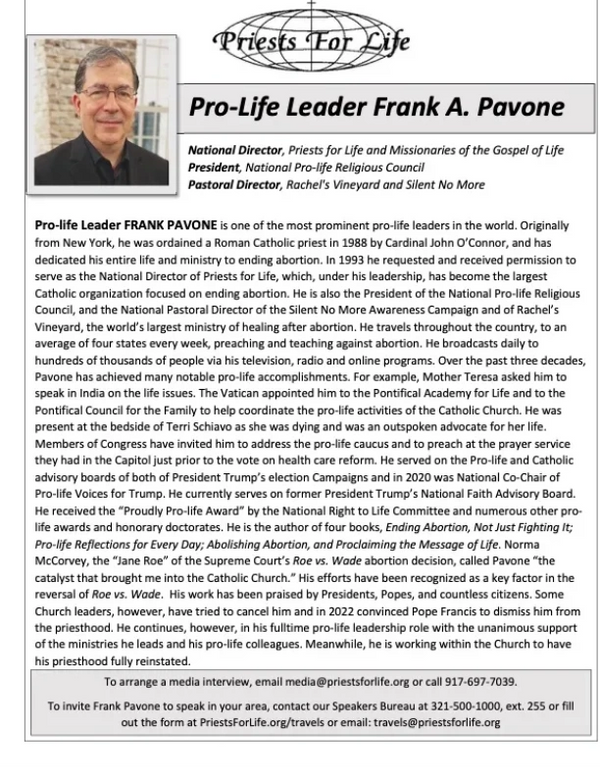 John 17:21 Tent Revival ~ We have on board a list of dynamic speakers, including Father Frank Pavone, Pastor Bill Banuchi, Pastor Steve Offringa, Pastor Anthony Mugnano,Pastor Mark Weller and testimonial from Anthony DiLullo. We will also have a live performance from One Came Down, other Gospel music performers, altar calls, deliverance, and healing.